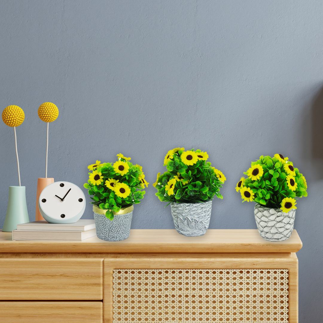 * Adorno maceta rústica con girasoles.