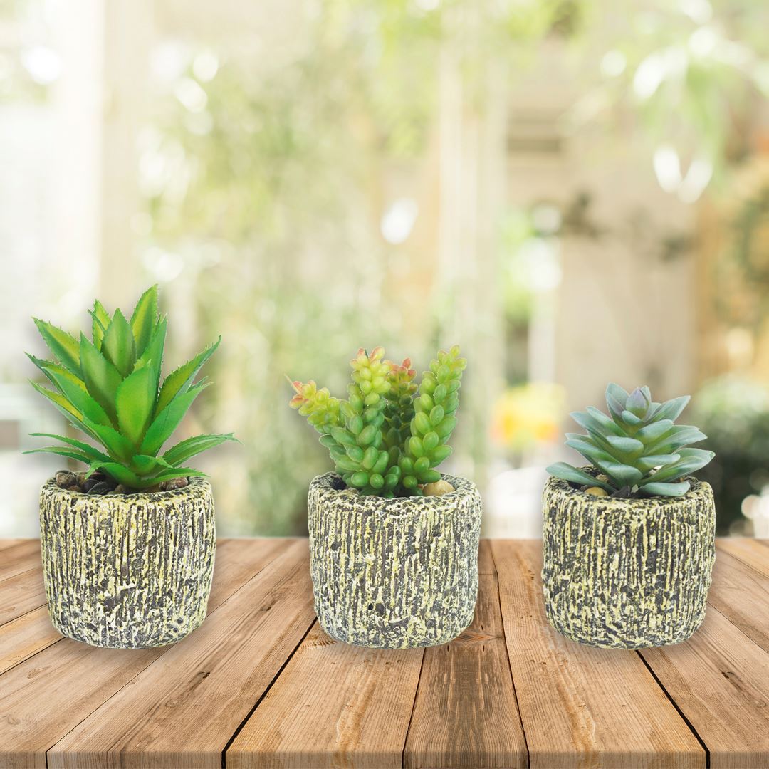 * Adorno maceta rústica con suculentas.