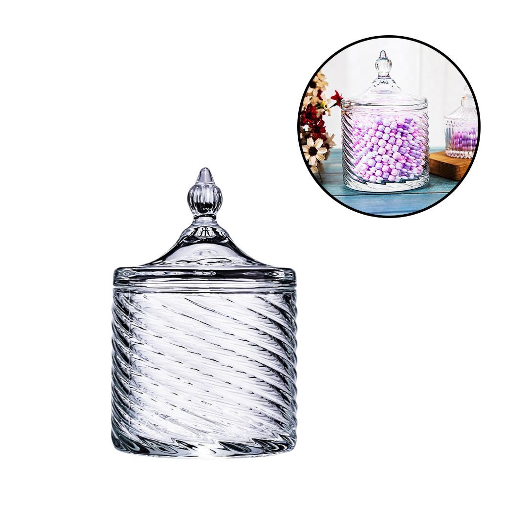 Bombonera de vidrio con tapa en caja- 9,5x15cm.