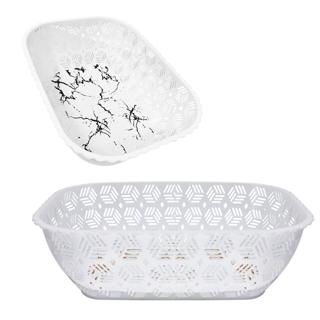 Cesto calado rectangular para fruta 29x21x8,5cm. Blanco