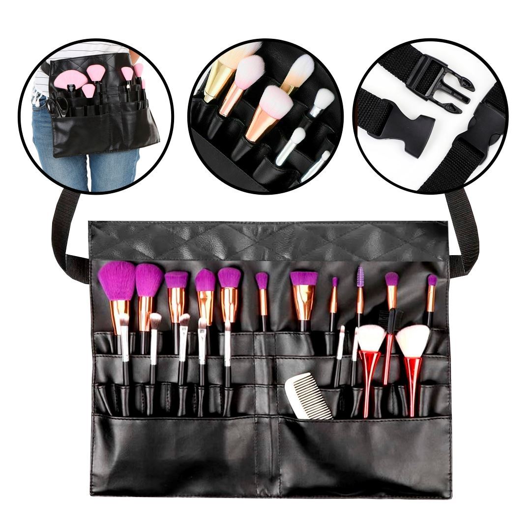 * Cinturón porta brochas para cosmética profesional ajustable.