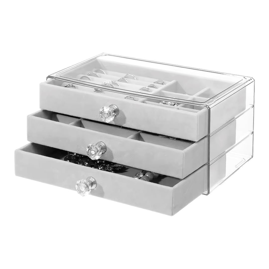 Estuche para alhajas- 3 pisos con tapa acrílico-