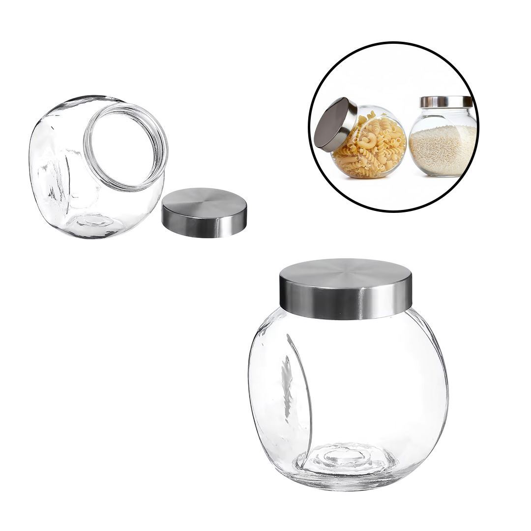 Frasco de vidrio transparente con tapa plateada- 1,2 litros
