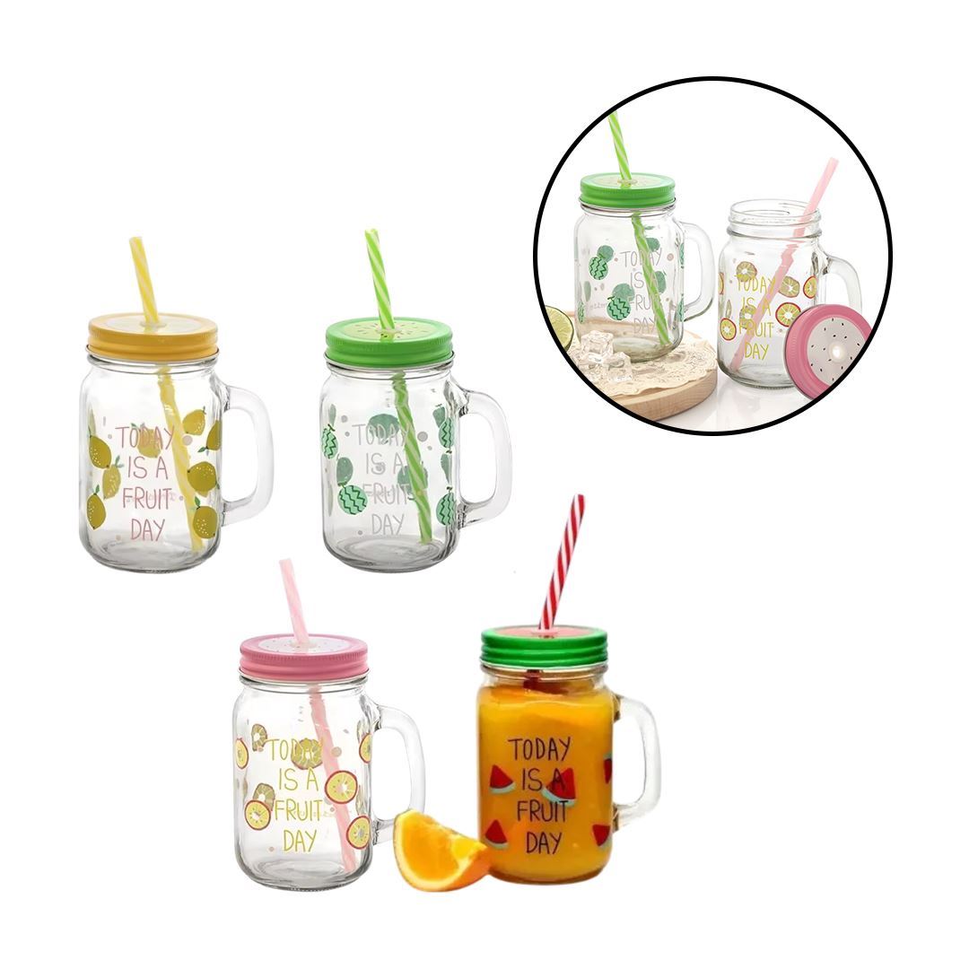 Frasco Jarro de vidrio con tapa y sorbito - Estampado 450ml