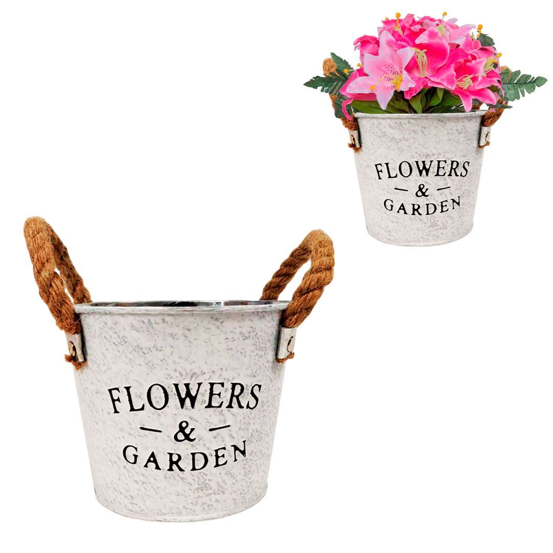 Maceta en metal con asas rústicas - Decoración Jardín Interior Exterior