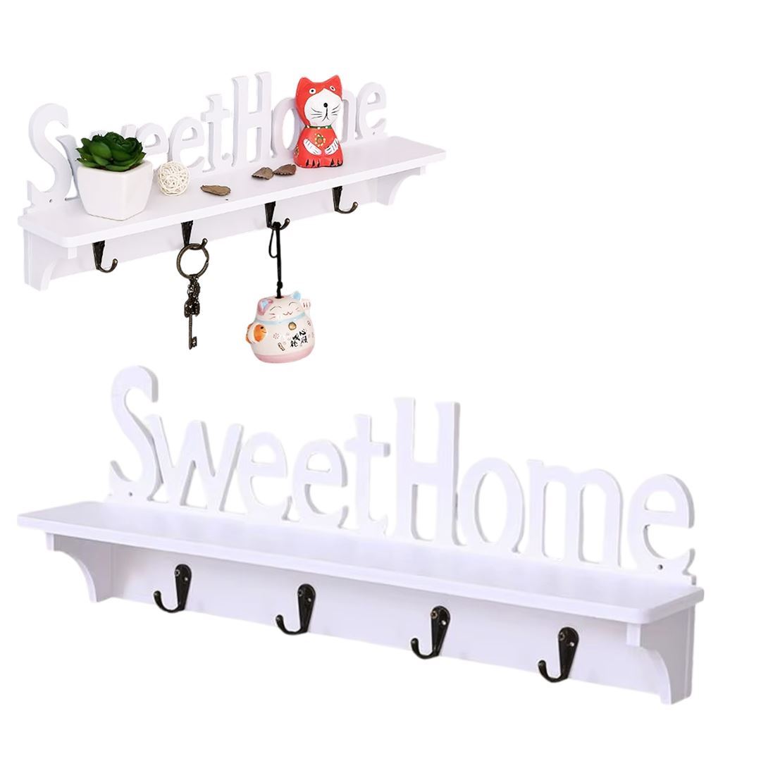 Repisa estante Porta llaves 4 ganchos Diseño Sweet Home