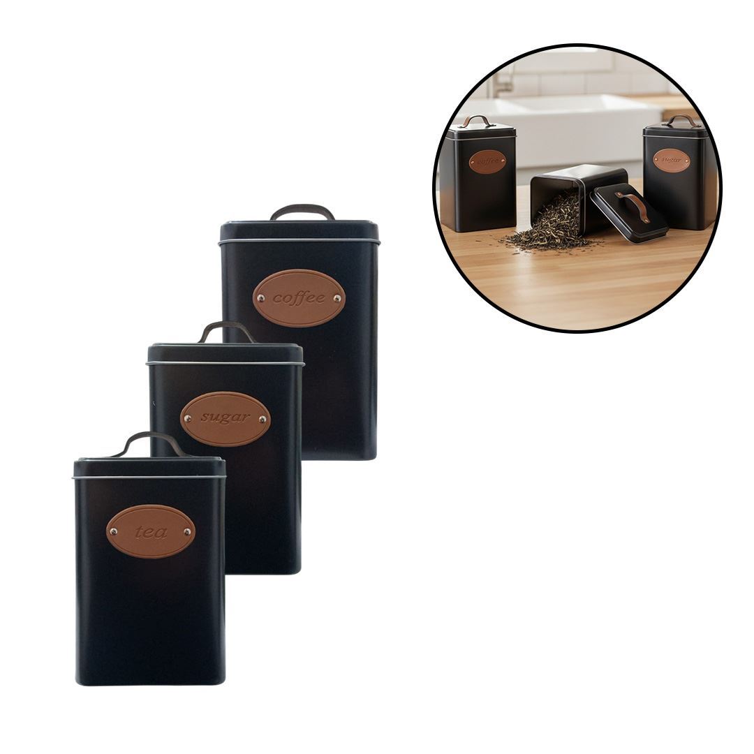 Tarro Lata en metal negro con tapa para cocina- Diseños surtidos.