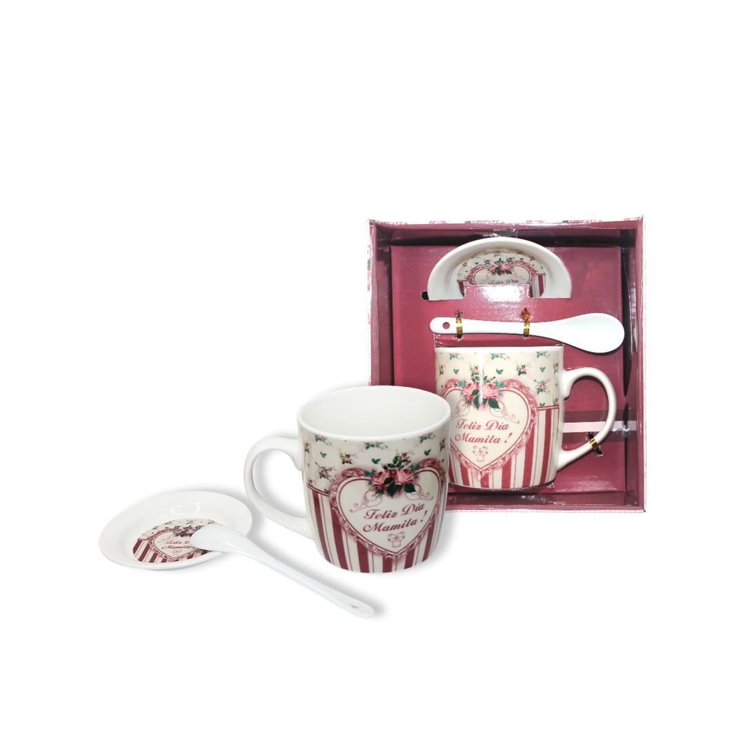 Taza cerámica con cuchara y plato - Diseños varios MAMÁ