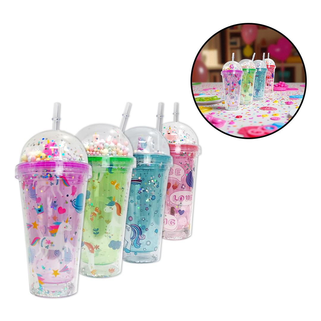 Vaso con tapa con pelotitas-unicornio y sorbito-450 ml. 4 di