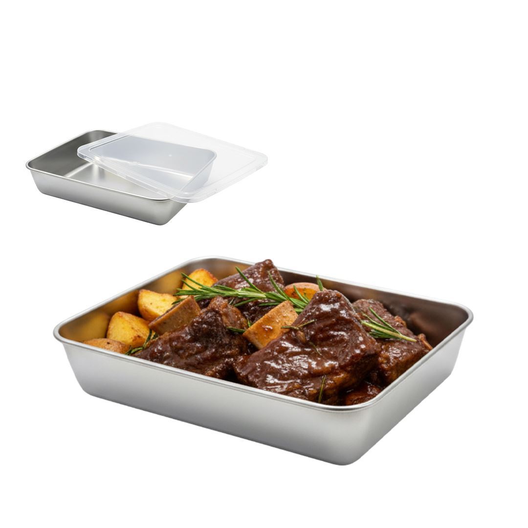 Vianda metalica con tapa transparente-25x19cm.